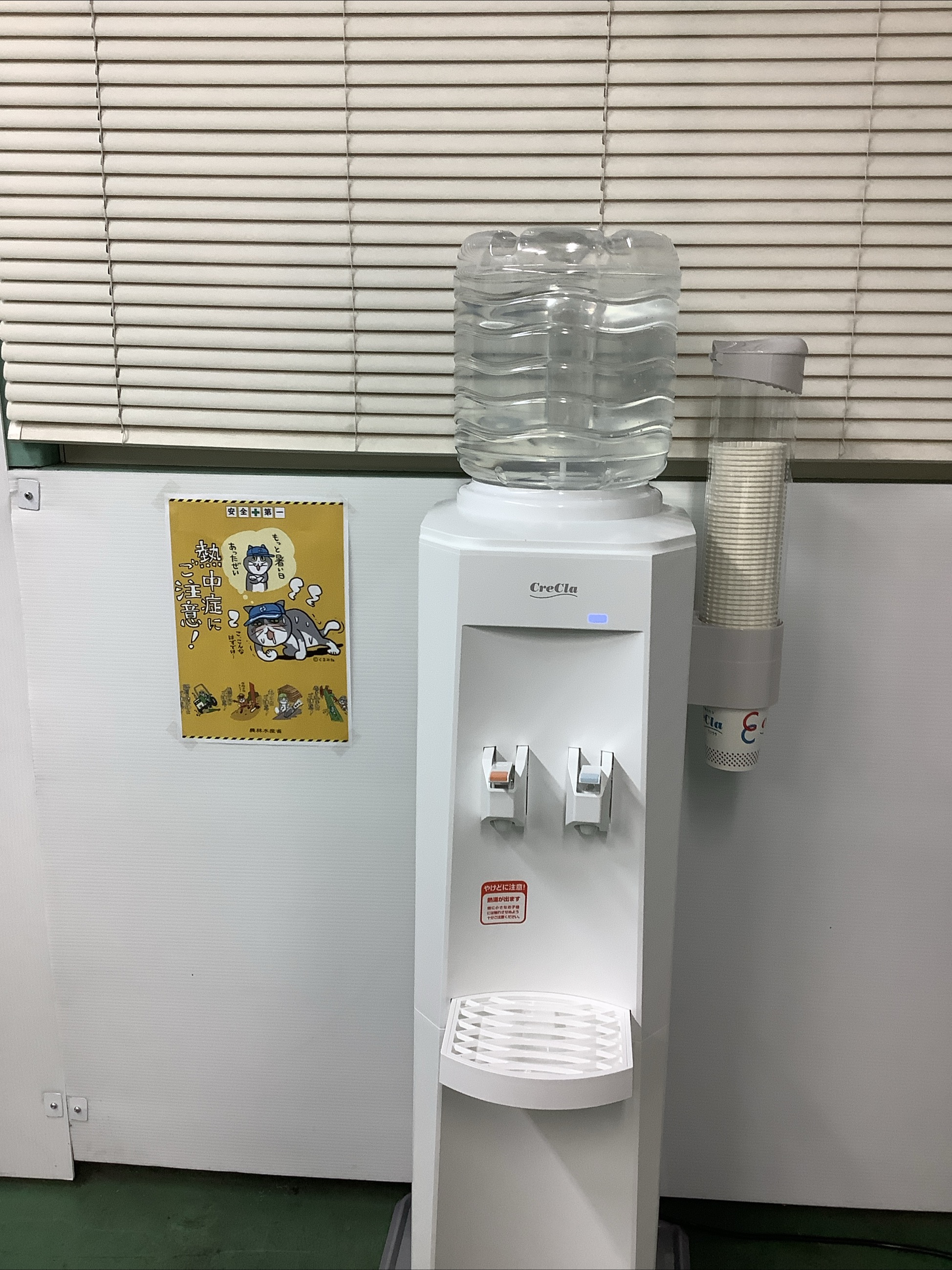 熱中症対策 「ウォーターサーバーの設置、速乾性ポロシャツ・ファン付きベストの支給」