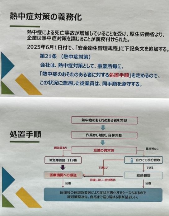 健康に関する講習会実施 「熱中症対策の義務化による社内教育を実施」